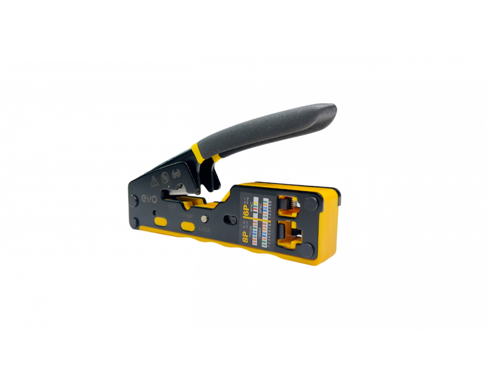 Профессиональный инструмент CT-RJ45-PT предназначен для обжима проходных коннекторов RJ45 на кабелях UTP Cat5e, Cat6, Cat6a (от 26AWG до 23AWG). Объединяет три функции: обжим, зачистка и резка — всё, что нужно для быстрого и качественного монтажа сетевого кабеля.
